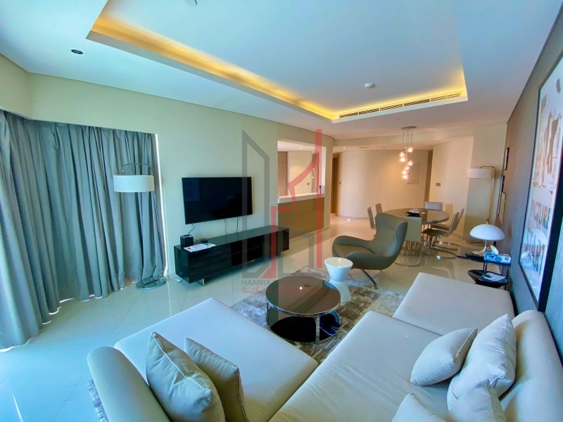 Hamra properties proudly presents this fully furnished 3-bedrooms bright unit boasts a high floor location and stunning skyline views, creating a serene and tranquil living experience.